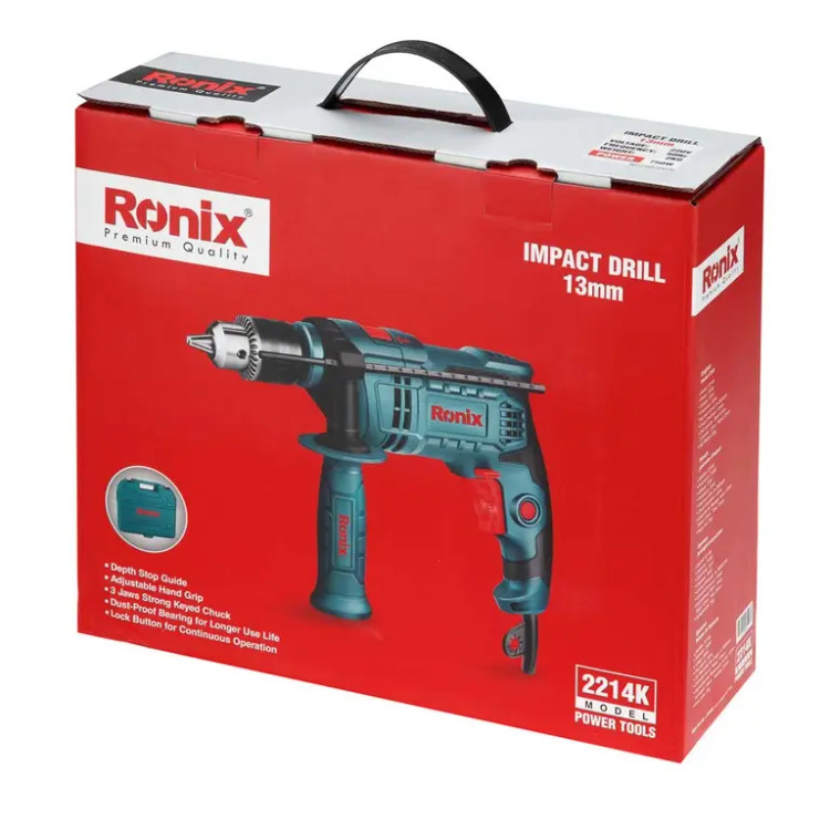 کیت دریل چکشی 2214K رونیکس، مجهز به موتور قدرتمند 750 وات است و استقامت بالایی را در شرایط پرفشار و فعالیتهای سنگین صنعتی نشان میدهد. سه نظام آچاری 13 میلیمتری این دریل، تمام فلزی و بسیار مقاوم ساخته شده و کار بر روی سطوح بسیار سخت و متراکم را امکانپذیر میکند. این سهنظام قدرتمند، مته را محکم سر جای خود نگهمیدارد و بدون کمترین انحراف، با سرعت به گردش درمیآورد.